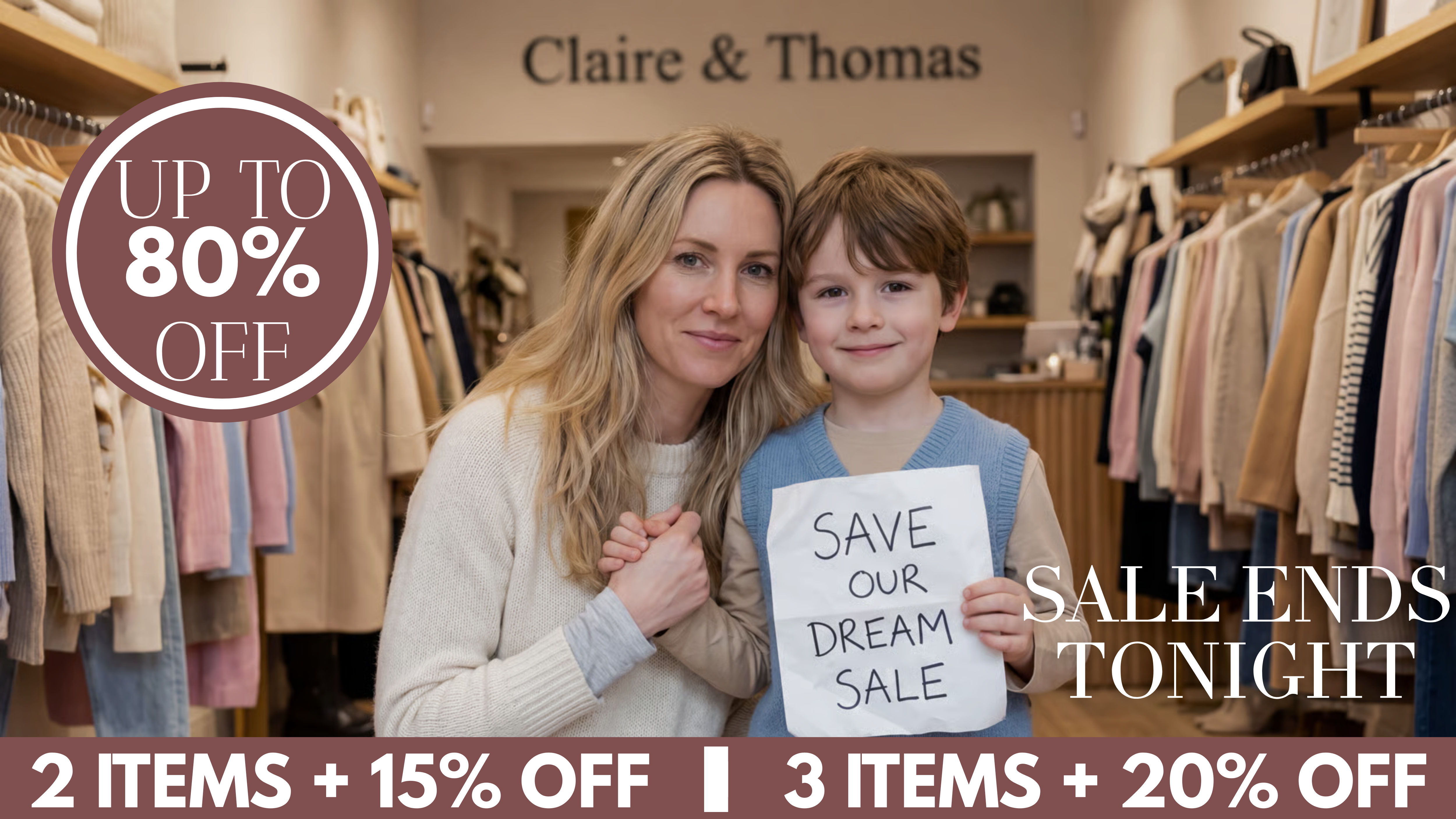 Užijte si až 80% slevu na celý sortiment po omezenou dobu, zatímco obnovujeme a udržujeme živý sen naší rodiny.