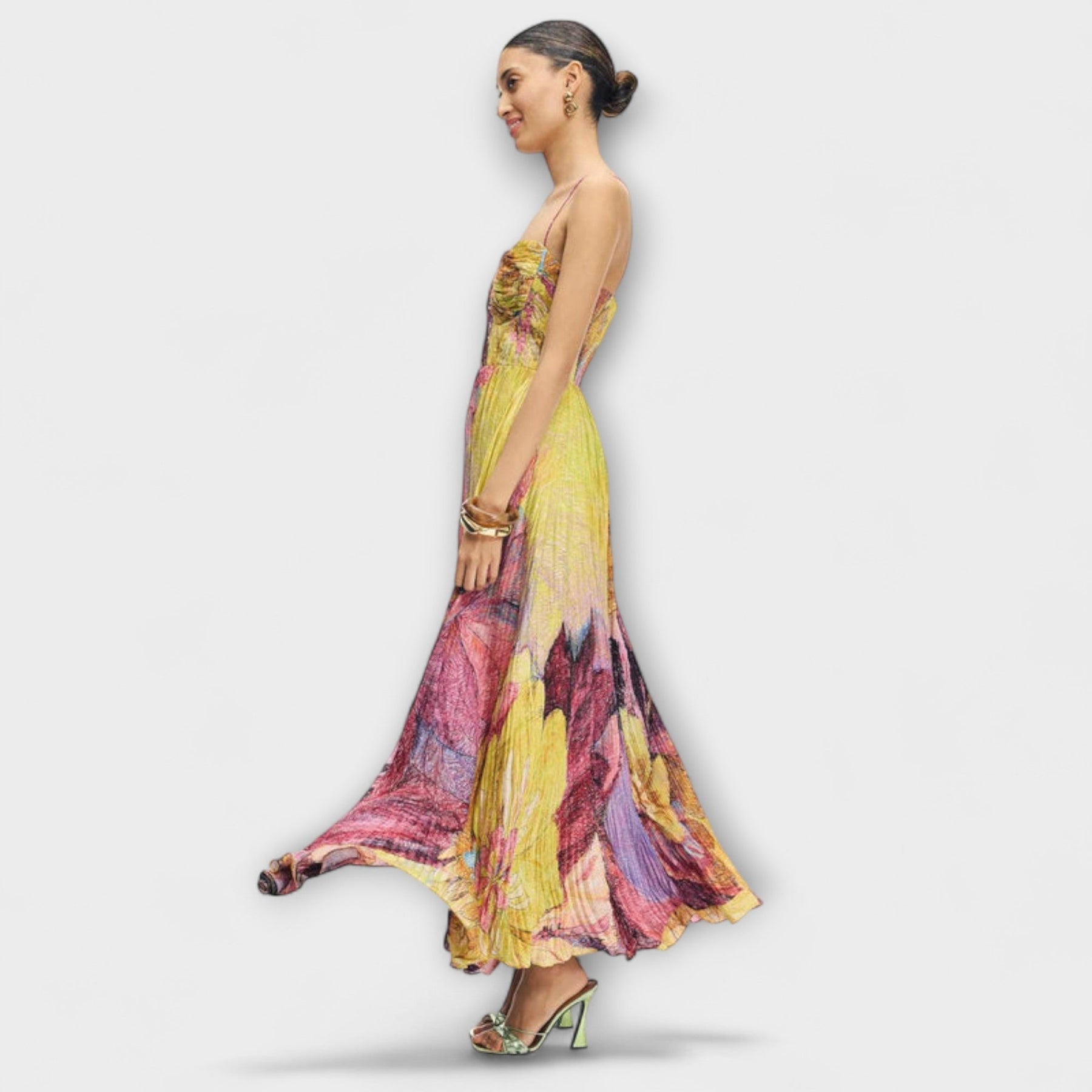 Navrženy s laskavým výstřihem a rukávem bez rukávů, tyto šaty nabízejí dokonalou kombinaci stylu a pohodlí. Vyrobeny z lehkého materiálu, jemně se vlní s každým krokem a jsou ideální pro letní oslavy či sluncem zalité dovolené.